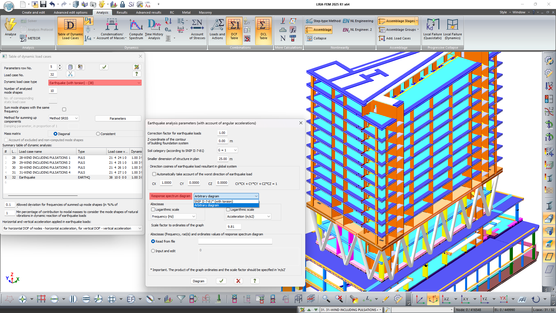 Dynamics module (32) was updated in accordance with the requirements of "SNRA 20.04-2020. Building code, the Republic of Armenia. Design of structures for earthquake resistance. General rules".