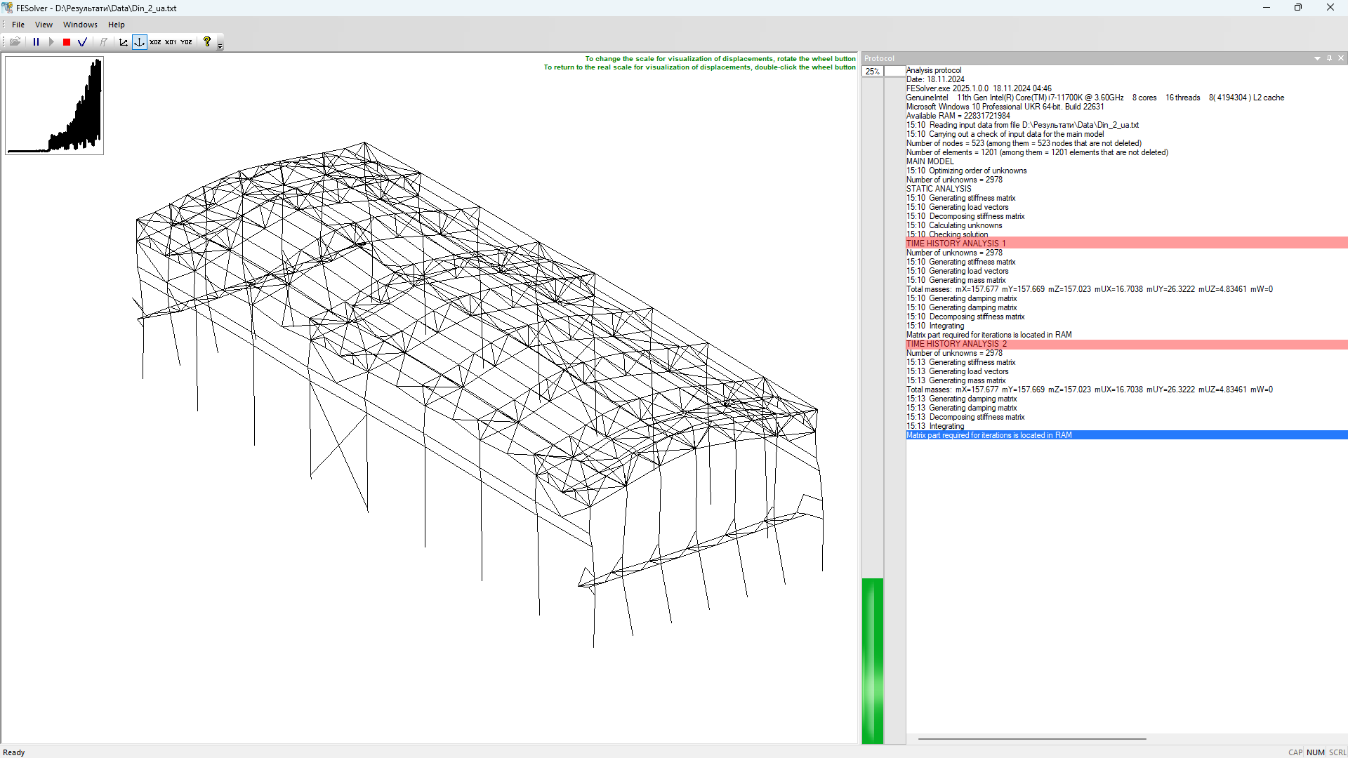 For problems with time history analysis, there is a new option to display mosaic plots of accelerations and velocities for all nodes of the model in the global or local coordinate system. It is also possible to view animation of acceleration and velocity changes in time.