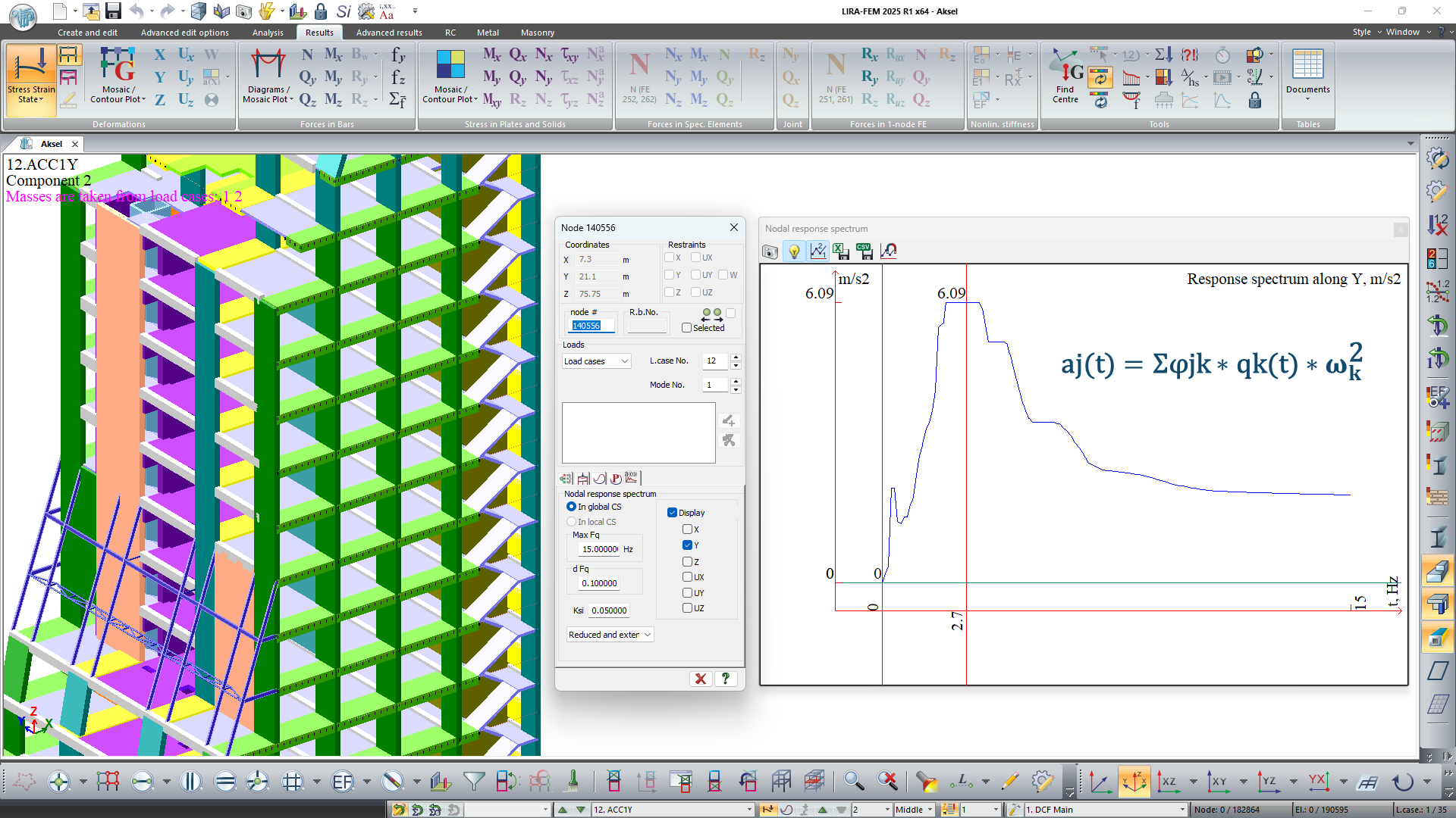 Note: In LIRA-SAPR 2022 R2, in analysis on accelerograms of earthquake load with dynamic modules 27 and 29 for design models consisting of elements or fragments with different damping properties, the analysis of equivalent attenuation by the j-th eigenmode of vibrations was implemented by the following formula: