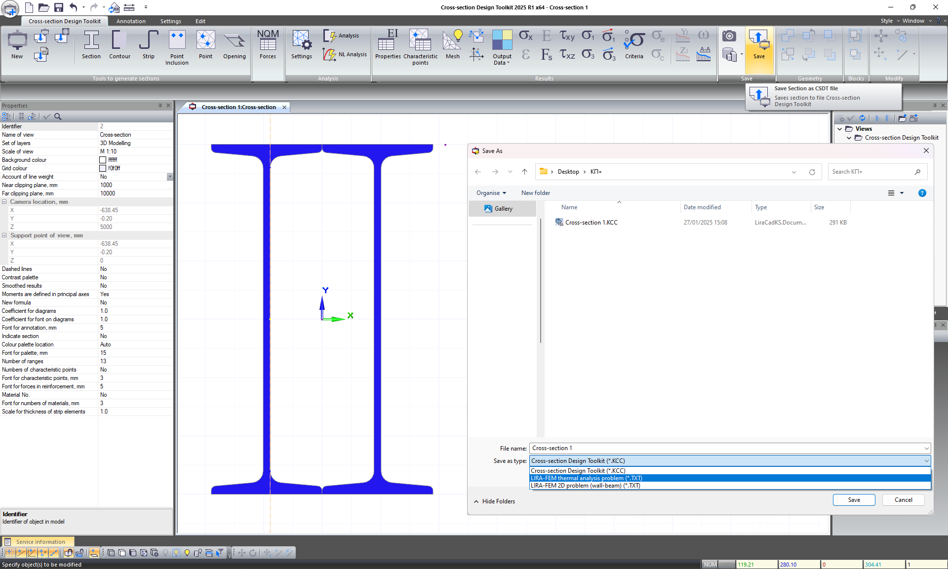 This module now offers the new option to export files to the 15th model type in the LIRA-FEM software. This feature allows the user to quickly generate design models for the problems with heat transfer analysis. During the export procedure, the proper finite element types and stiffnesses are assigned to all elements; convective heat transfer elements are moved along the outer contour of the section to simulate boundary conditions and external loads.