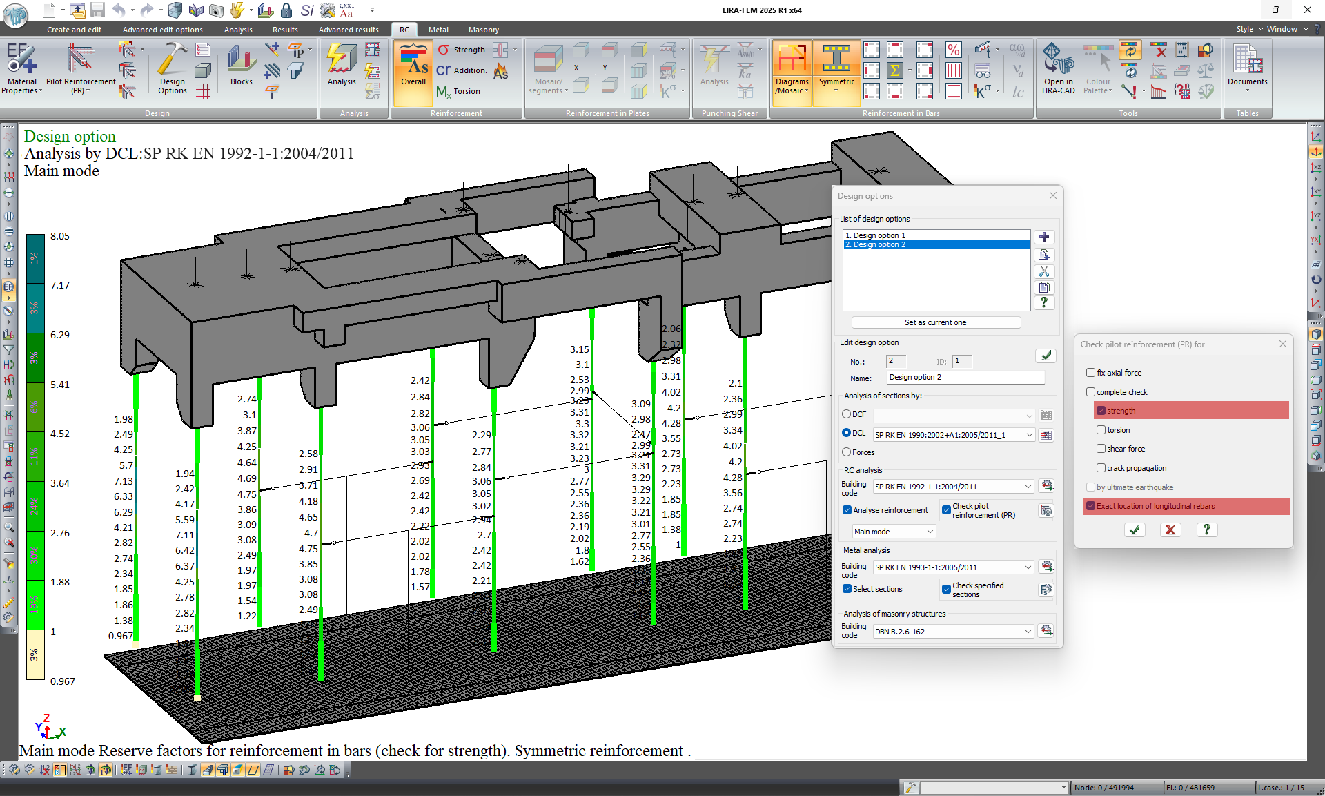 - For the DBN V.2.6-98:2009 standards, the option to output the safety factor for the specified reinforcement as an envelope result for each check has been added.