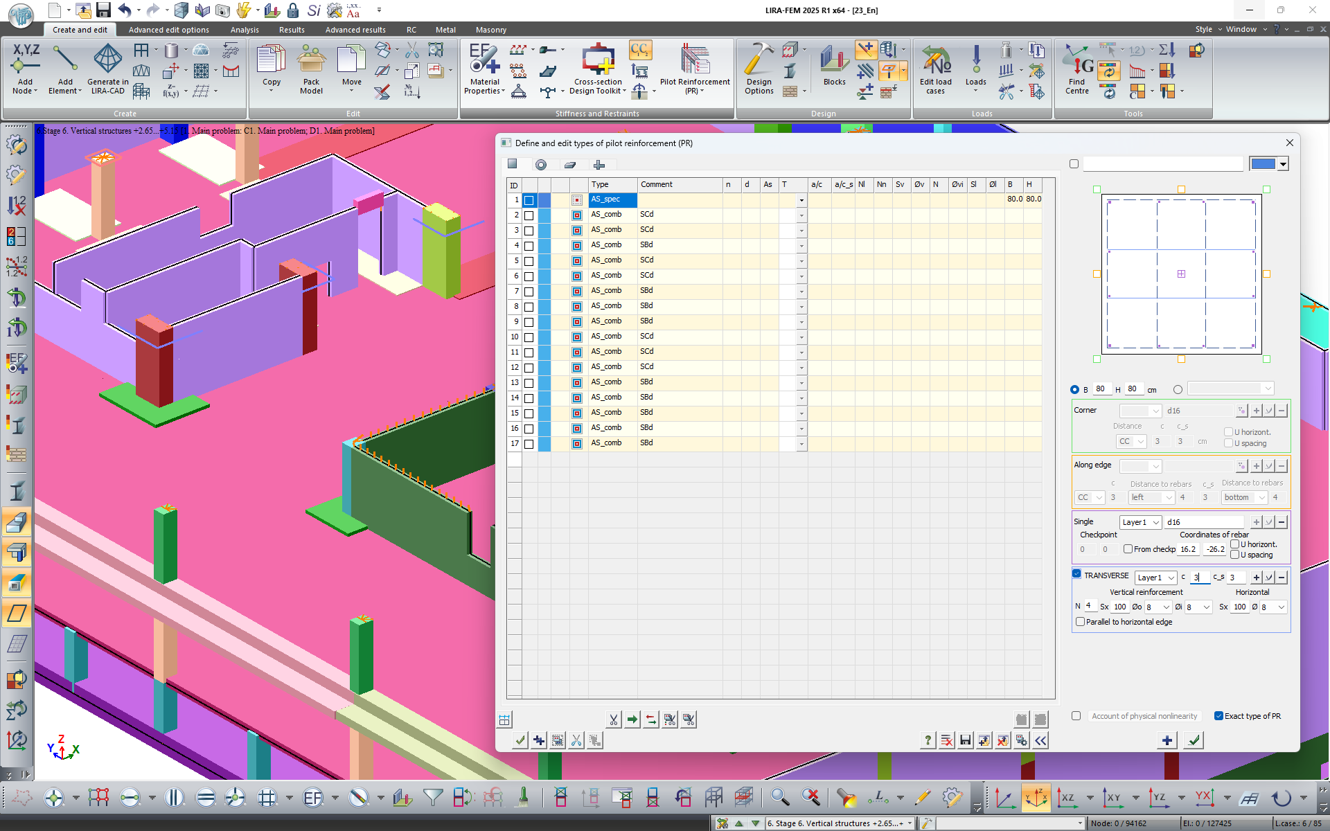 New option to define any number of horizontal cuts of transverse reinforcement to check the types of pilot reinforcement. For the exact type of PR, there is an option to create several layers of transverse reinforcement.