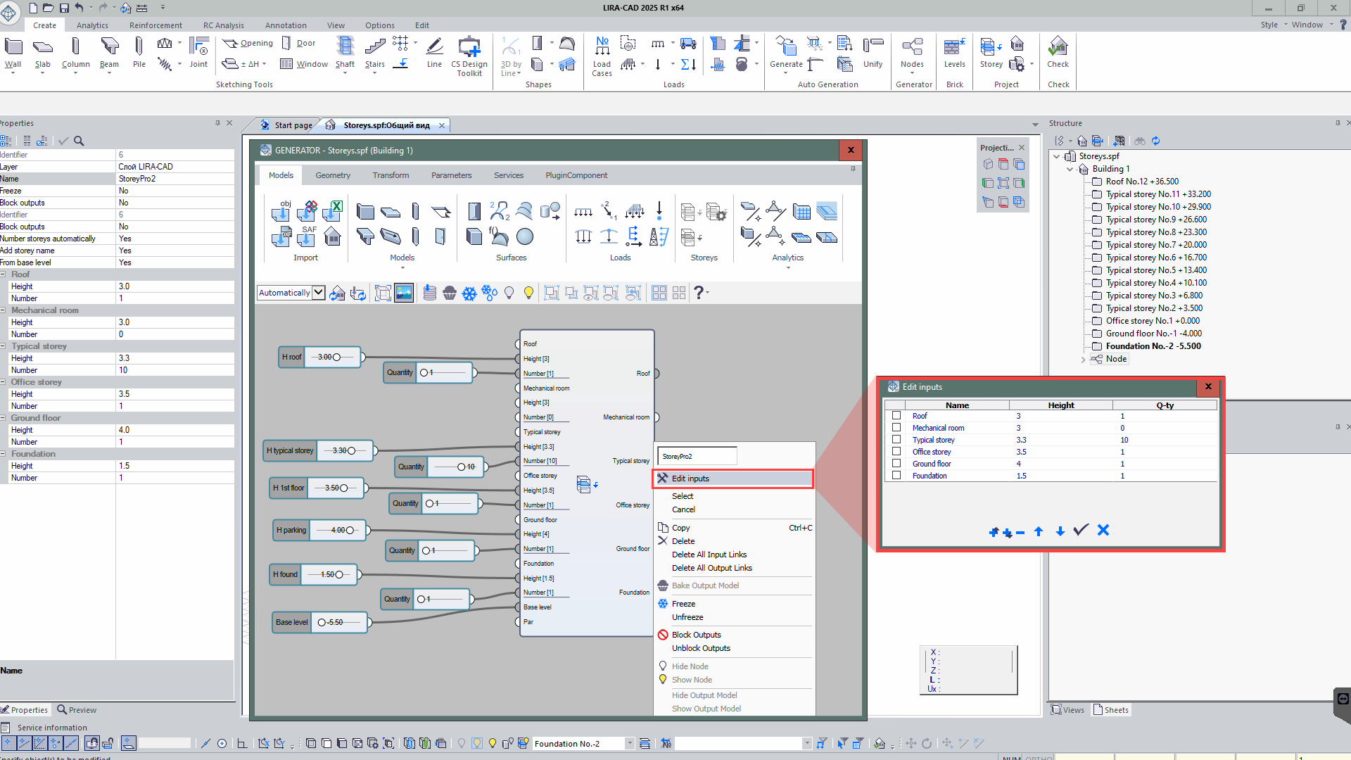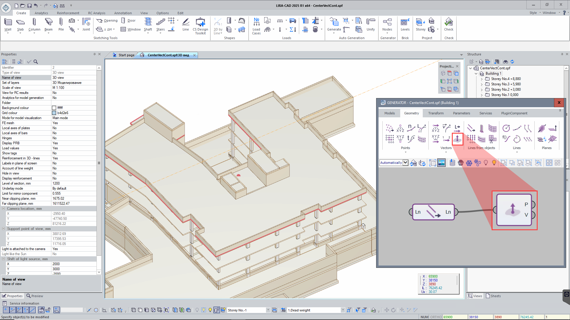 Advanced generation of storeys by height and number: this node provides flexible tools for modelling the storey of a building with account of the height and number of storeys. This feature is very popular with users who have called for its further development. All of this information is now simply contained in a single node, eliminating the need to enter other nodes that were previously used to indicate the number of storeys and their heights.