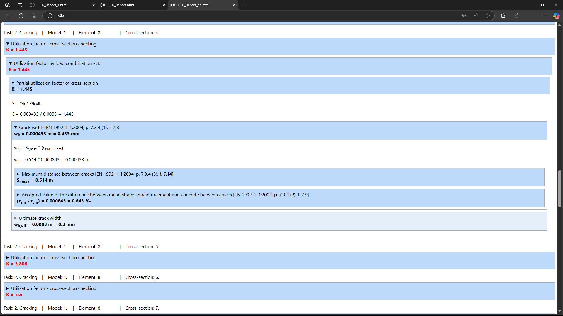 For the DBN V.2.6-98:2009 and EN 1992-1-1:2004/A1:2014 standards, a verification of wall and slab elements has been implemented based on the strength of normal cross-sections and crack resistance.