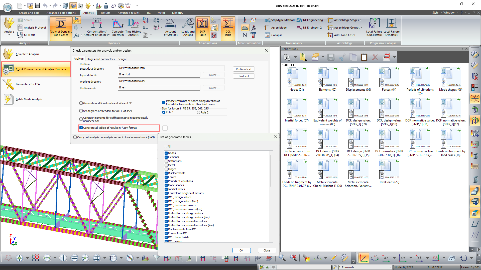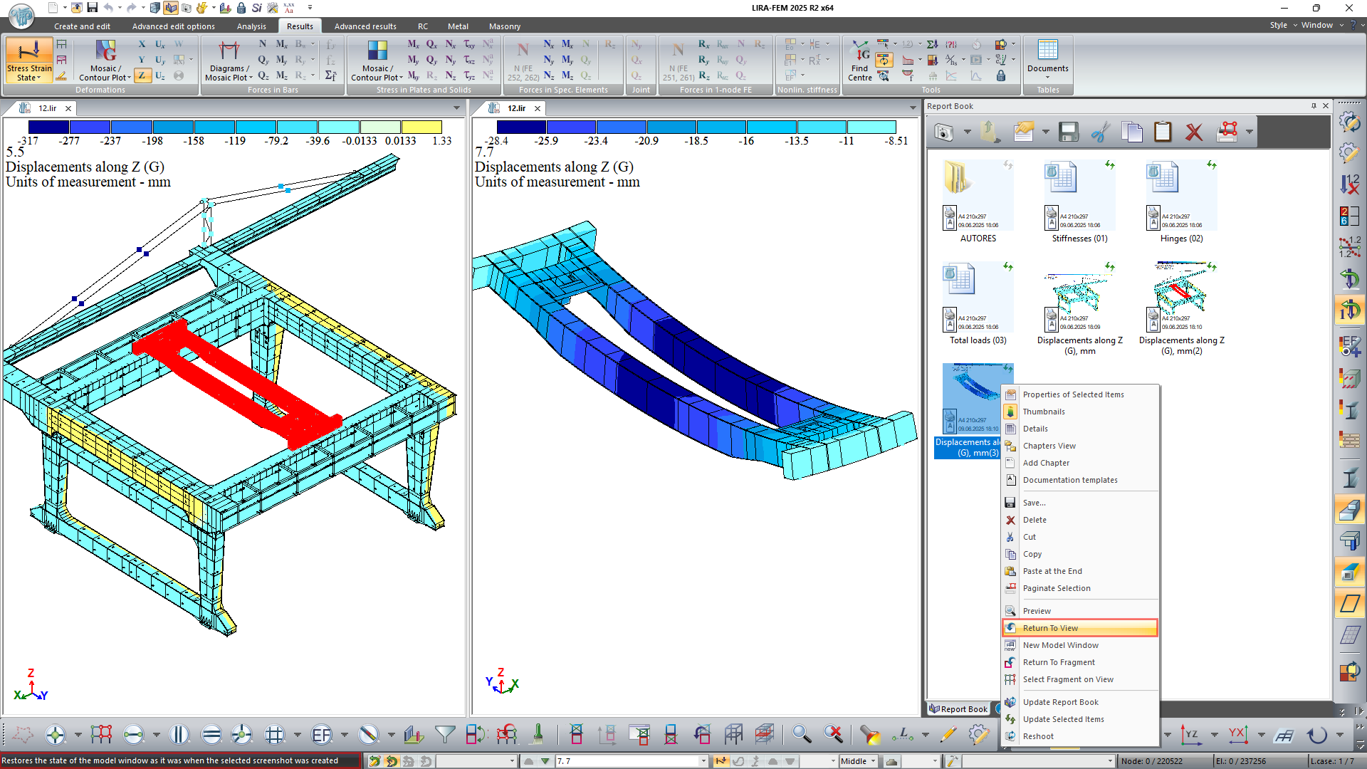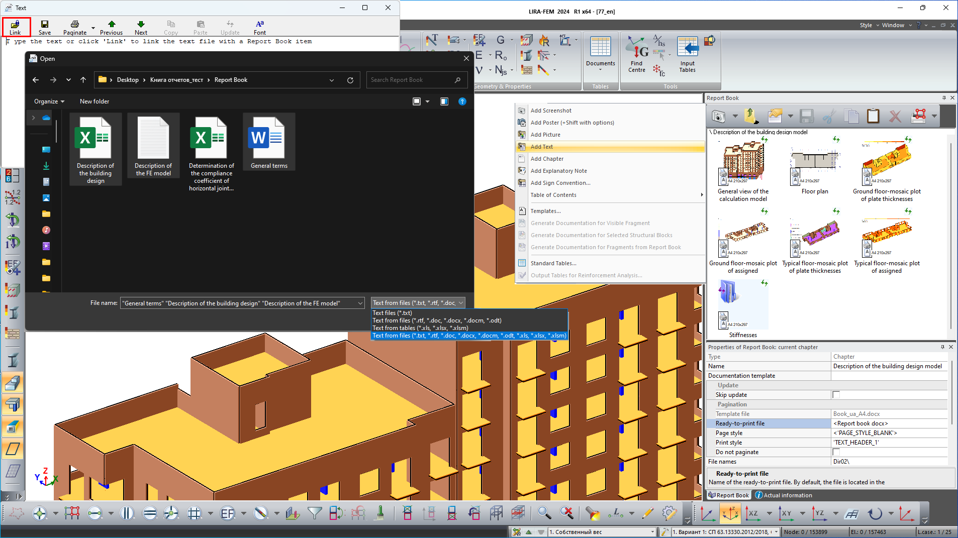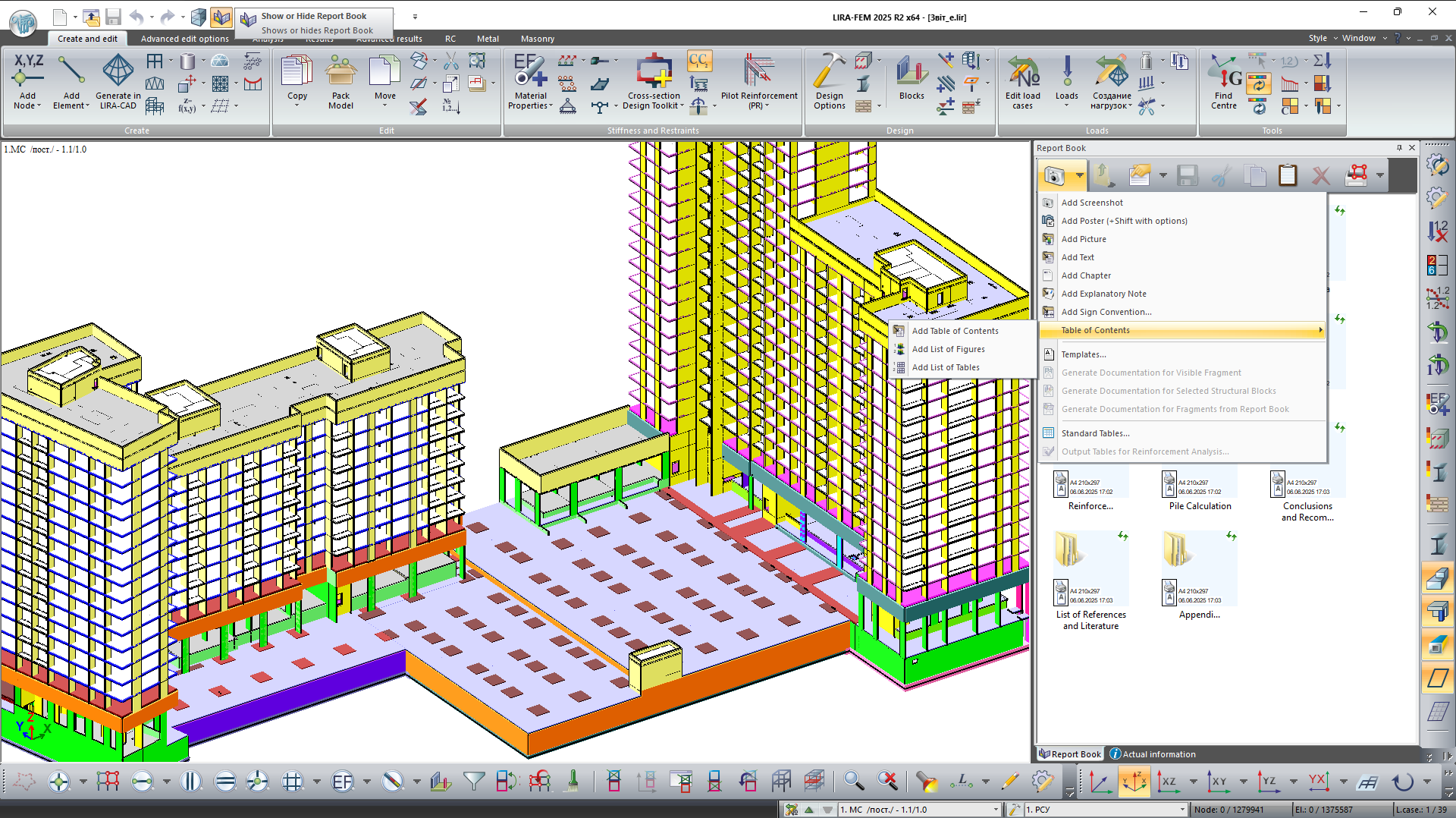 Report Book is a tool for creating complete, structured technical documentation based on analysis results obtained in LIRA-FEM program. The title page, table of contents, structured chapters, interactive screenshots, and tables are all automatically generated in the system.