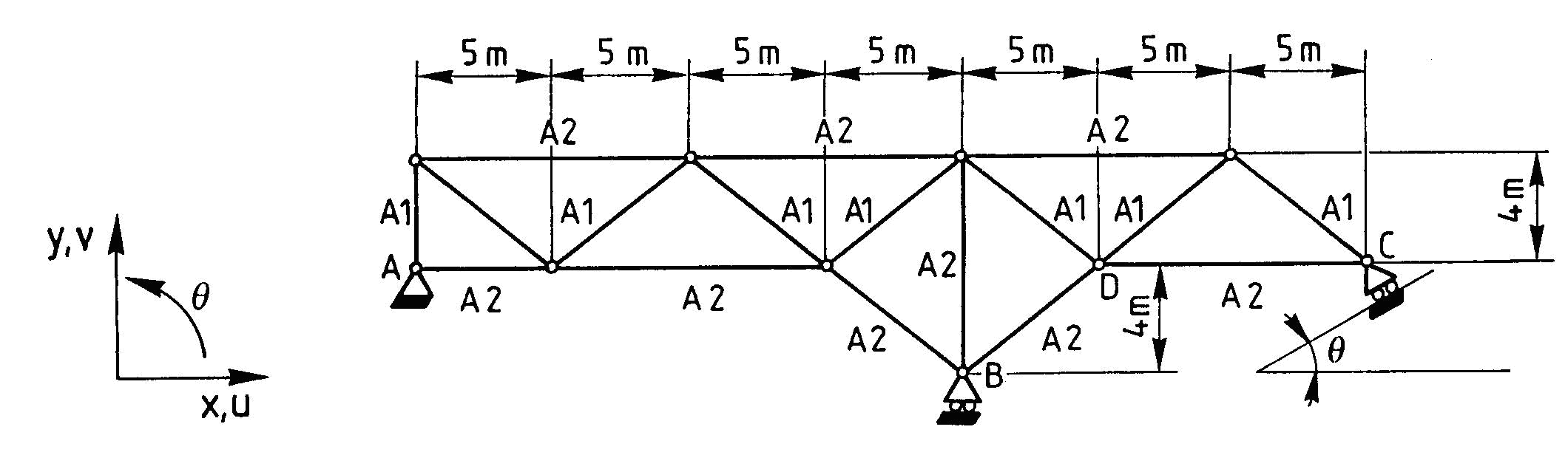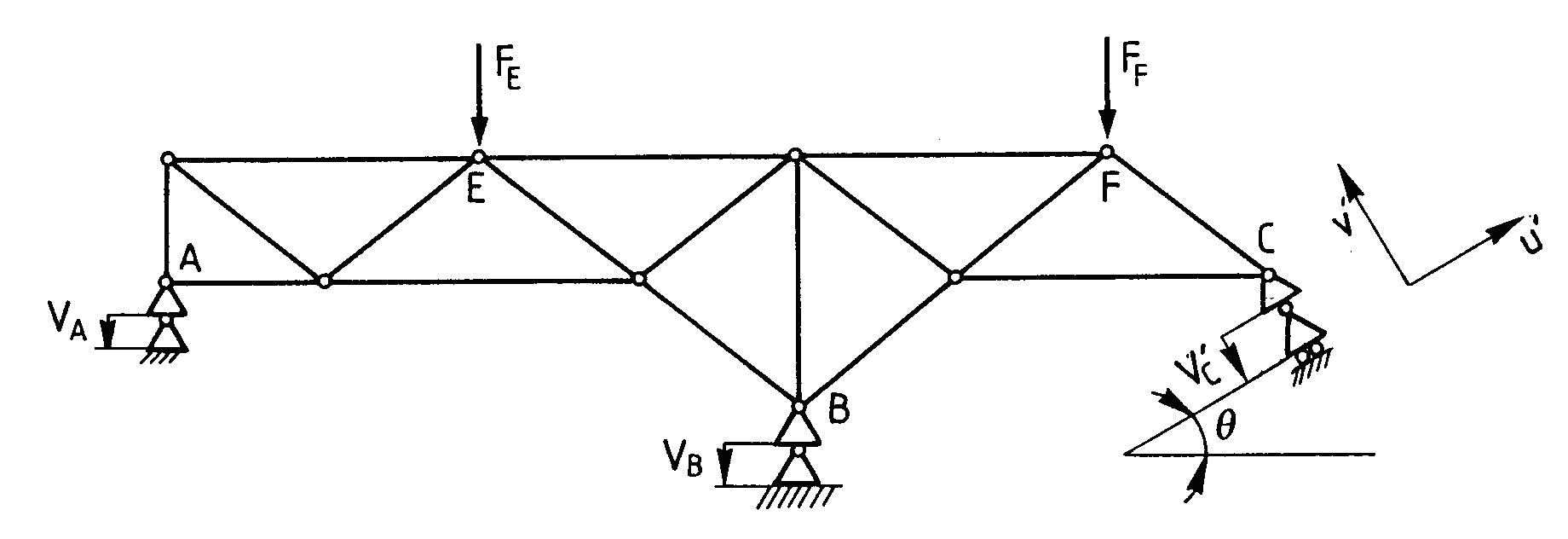 Boundary conditions: uA=vA = 0; vB = vl c = 0.