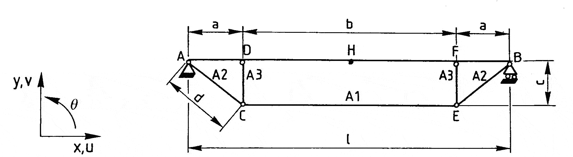 Boundary conditions: uA = vA = 0; vB = 0.