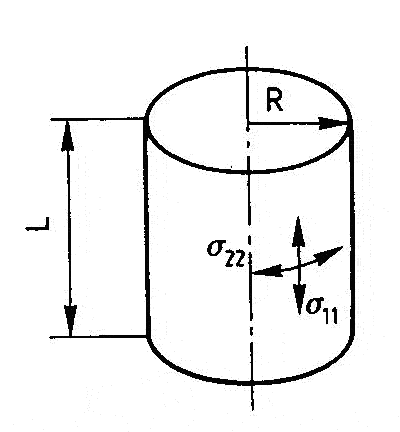 Verification of the LIRA-FEM software / Тест 1.6 Cylinder under internal pressure / Analytical solution: R.J. Roark et W.C. Young, Formulas for stress and strain, 5e edition, New York, McGraw-Hill, 1975.