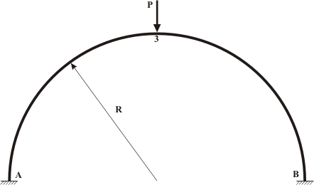 Verification of the LIRA-FEM software / Тест 9.5 Large displacements and loss of stability of a pinched circular arch (new) / Analytical solution: L. D. Landau, E. M. Lifshits Theory of Elasticity, M.: Science, 1987, p. 107. 107.