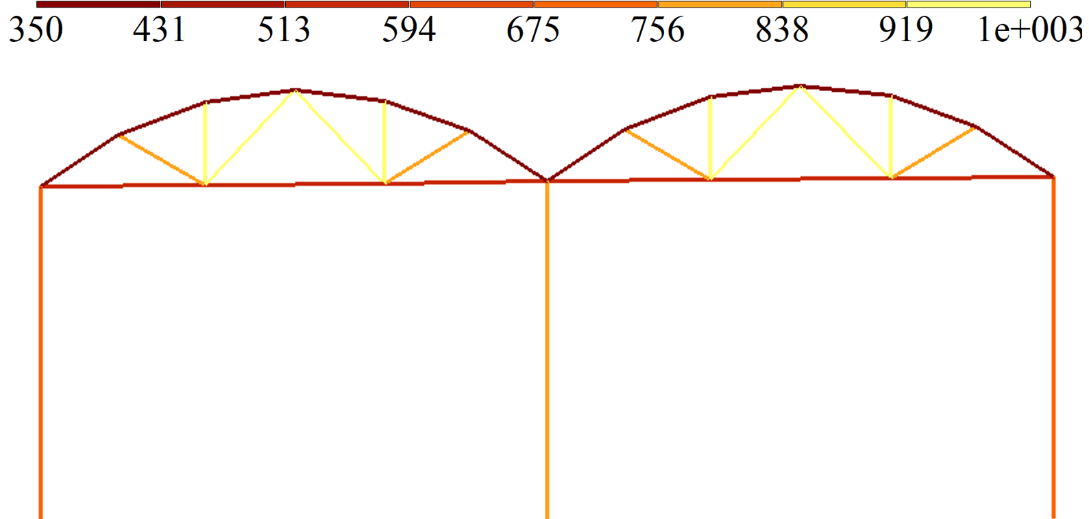 The program has options to determine and visualize critical temperature in elements of the structure (temperature at which plastic hinge is generated). Thus, it is possible to determine bearing capacity of the structure with account of modification in material properties of steel in high temperatures.