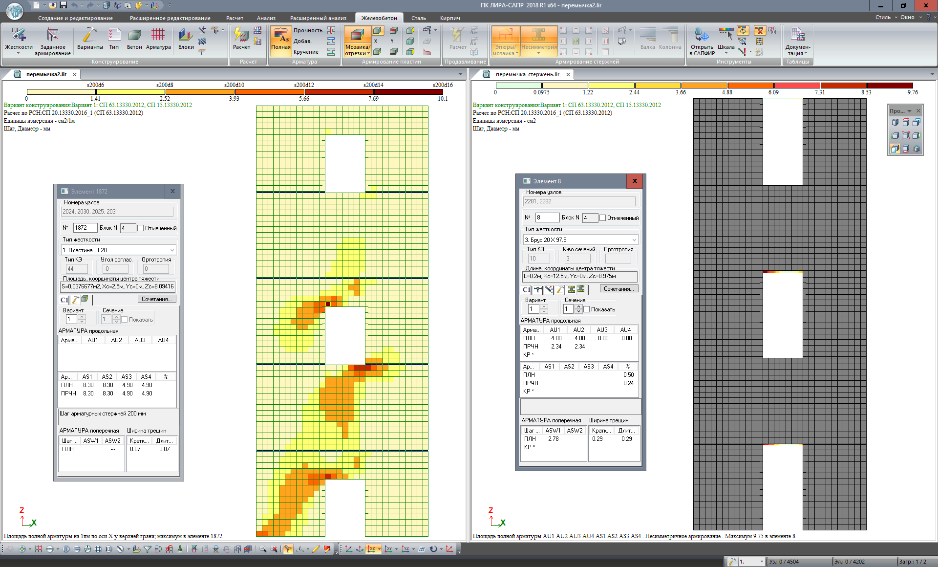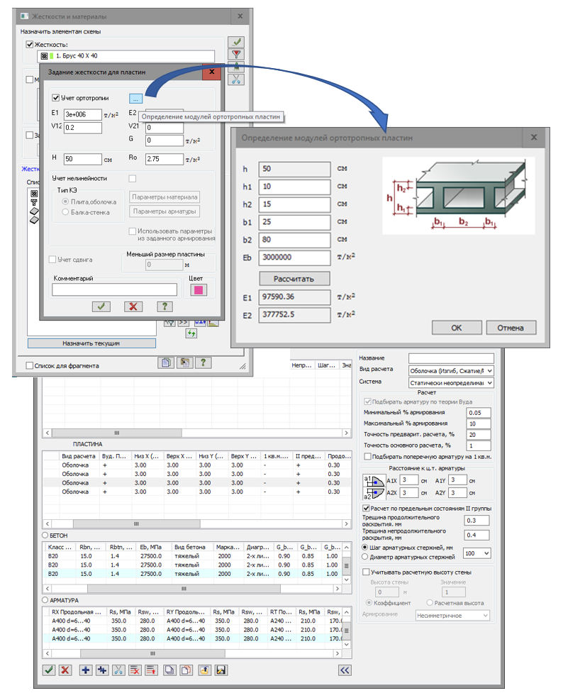 Analysis of PRB bars is also available for plate elements: shells, slabs, wall-beams.