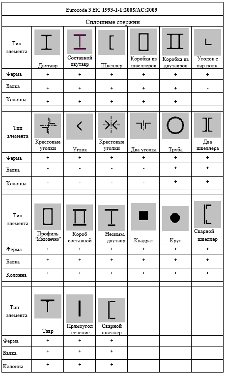 Above-mentioned building codes and realized for selection and check for a large number of cross-sections of solid bars.